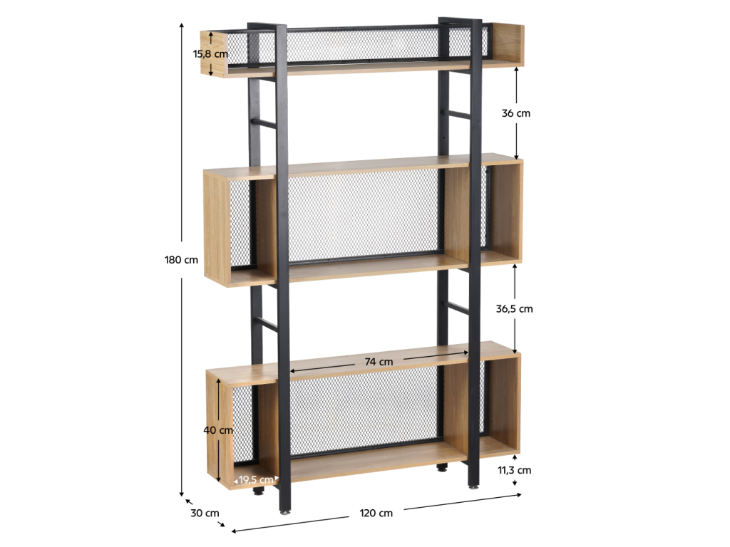 Rozmery strednej police (ŠxHxV): 120x30x40 cm