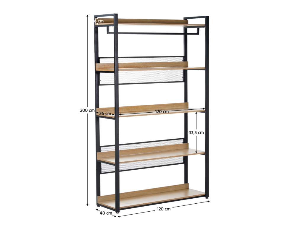 5-policový regál, dub/čierna, KILOS NEW TYP 3