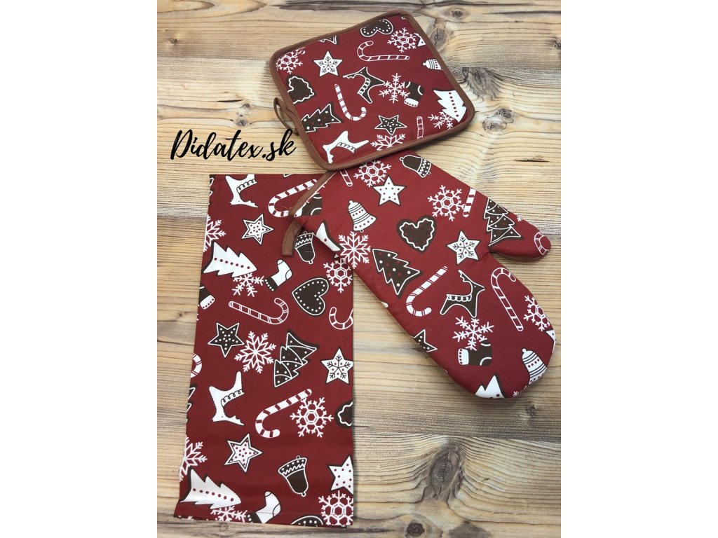 Vianočný kuchynský set. Tento vianočný 3 set obsahuje : 1x utierku s vianočným motívom o rozmere 45x70cm, s uškom na zavesenie 1x kuchynskú chňapku s vianočným motívom a uškom na zavesenie 1x podložku s vianočným motívom a uškom na zavesenie MATERIÁL: 100% Bavlna ROZMER utierky : 45x70 cm PRANIE: Odporúčané pranie je 40°C Dotkni sa kvality...Buďte prvý, kto napíše príspevok k tejto položke.