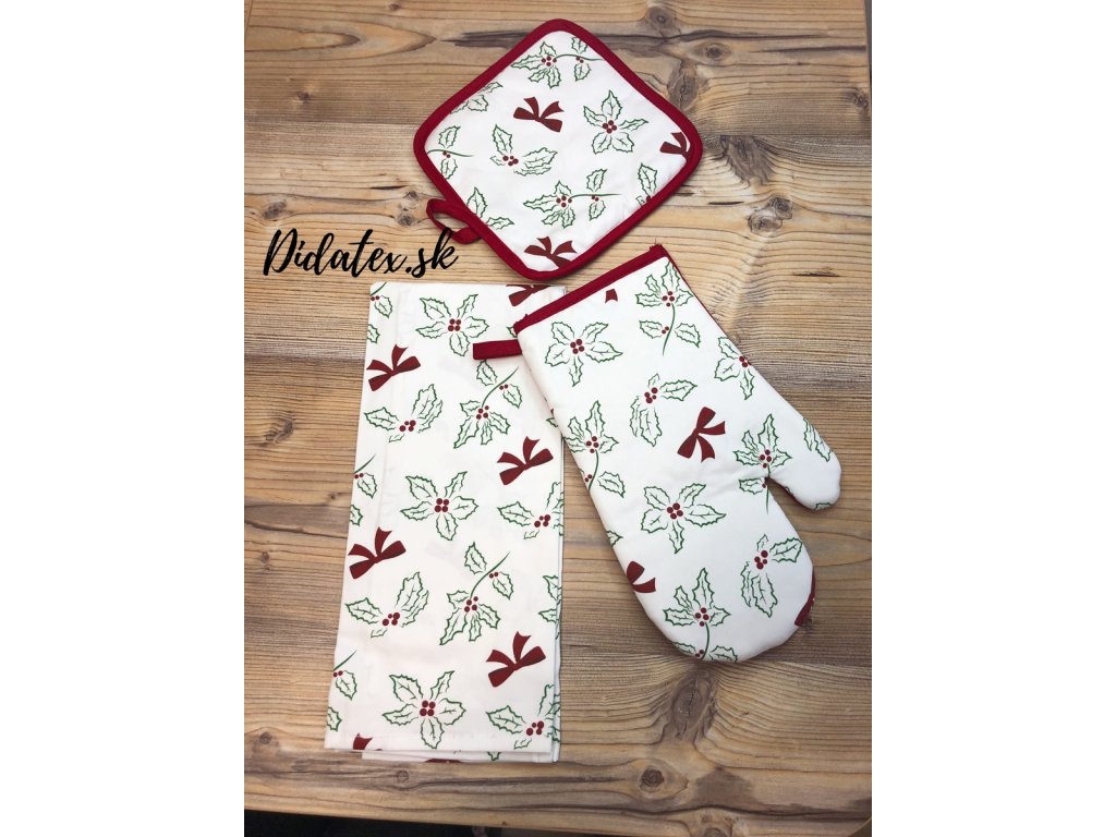Vianočný kuchynský set. Tento vianočný 3 set obsahuje : 1x utierku s vianočným motívom o rozmere 45x70cm, s uškom na zavesenie 1x kuchynskú chňapku s vianočným motívom a uškom na zavesenie 1x podložku s vianočným motívom a uškom na zavesenie MATERIÁL: 100% Bavlna ROZMER utierky : 45x70 cm PRANIE: Odporúčané pranie je 40°C Dotkni sa kvality...Buďte prvý, kto napíše príspevok k tejto položke.