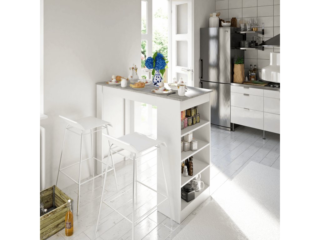 Barový stôl, biela/betón, 117x57 cm, AUSTEN