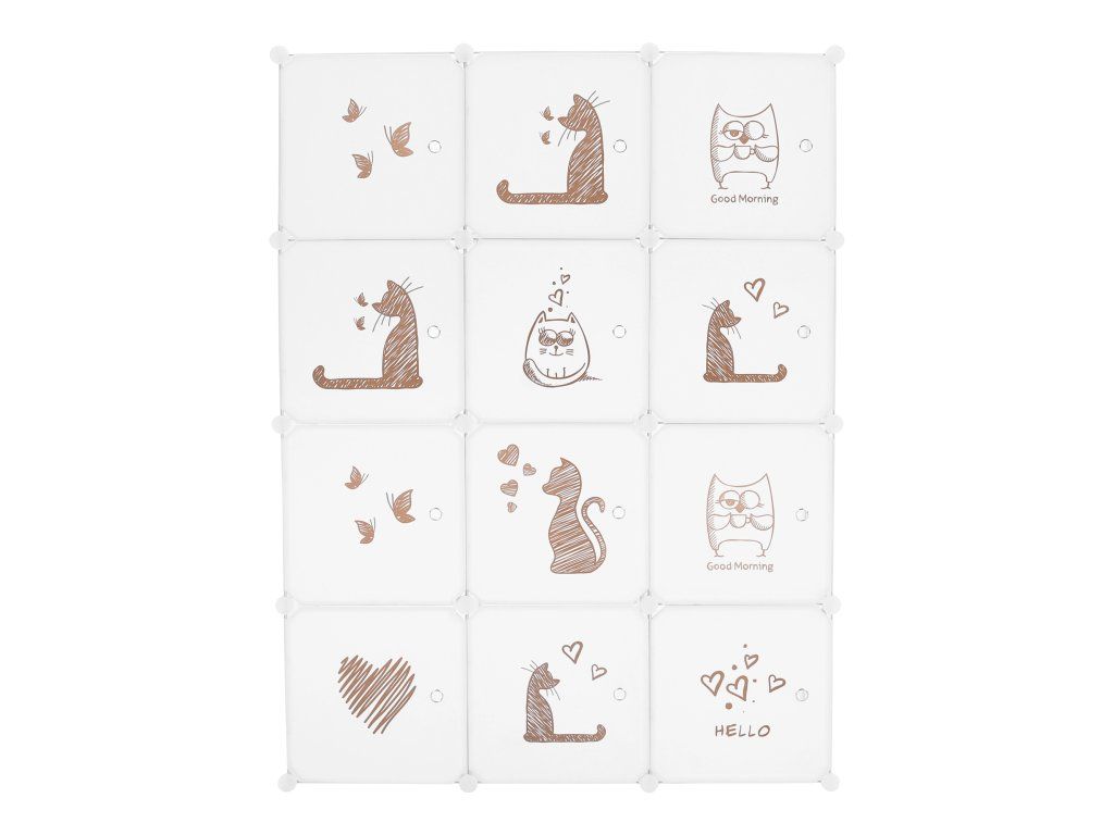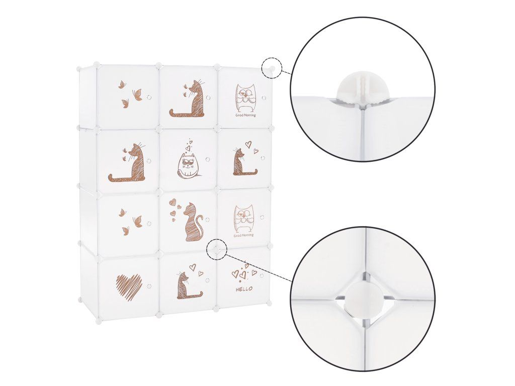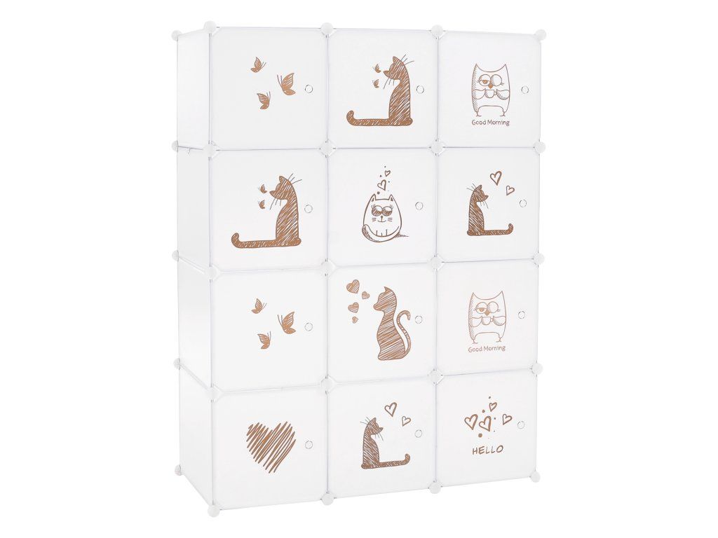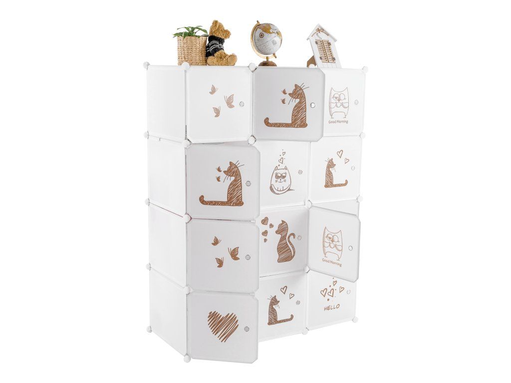 Detská modulárna skriňa, biela/hnedý detský vzor, KITARO