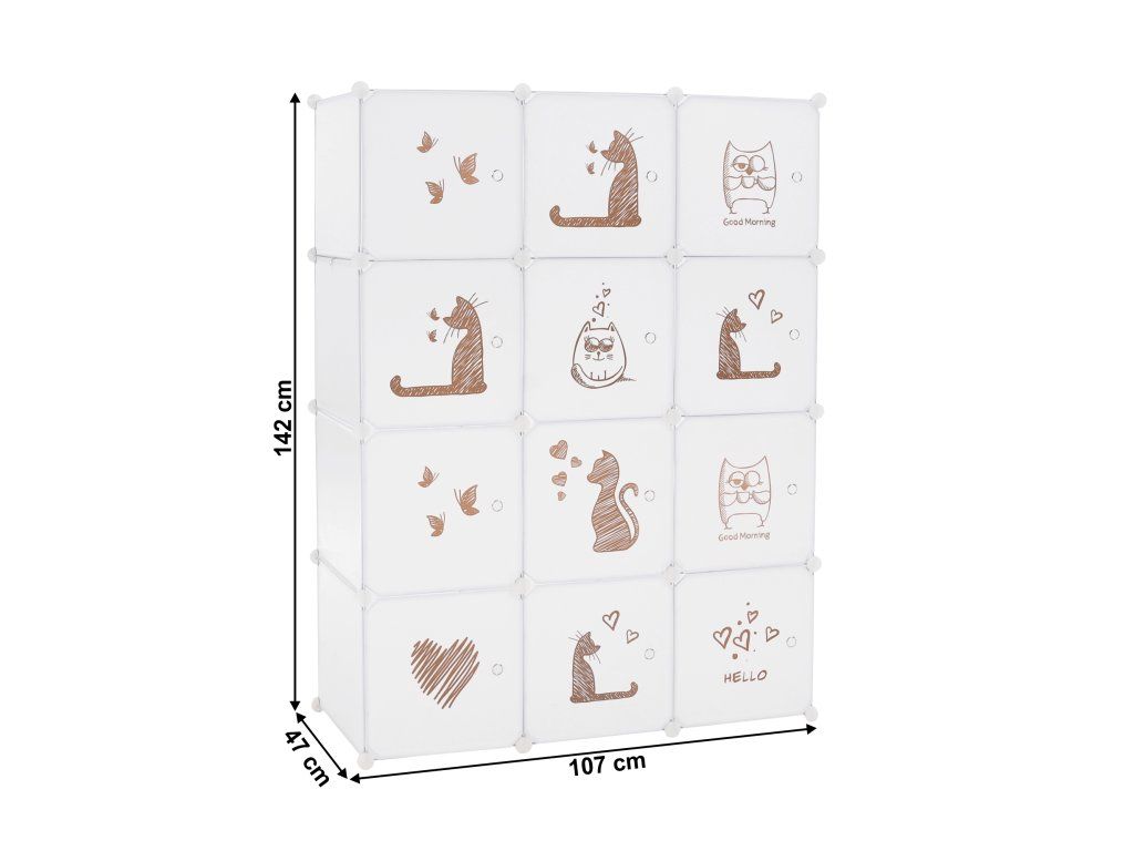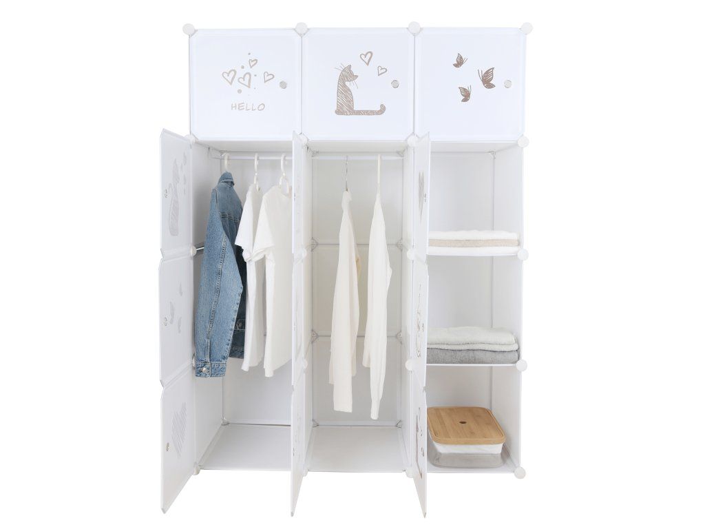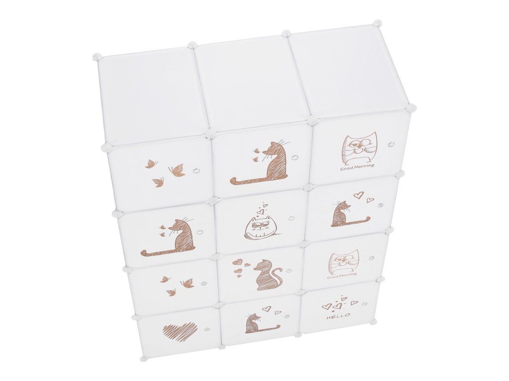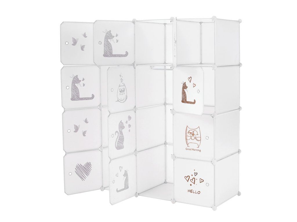 Detská modulárna skriňa, biela/hnedý detský vzor, KITARO