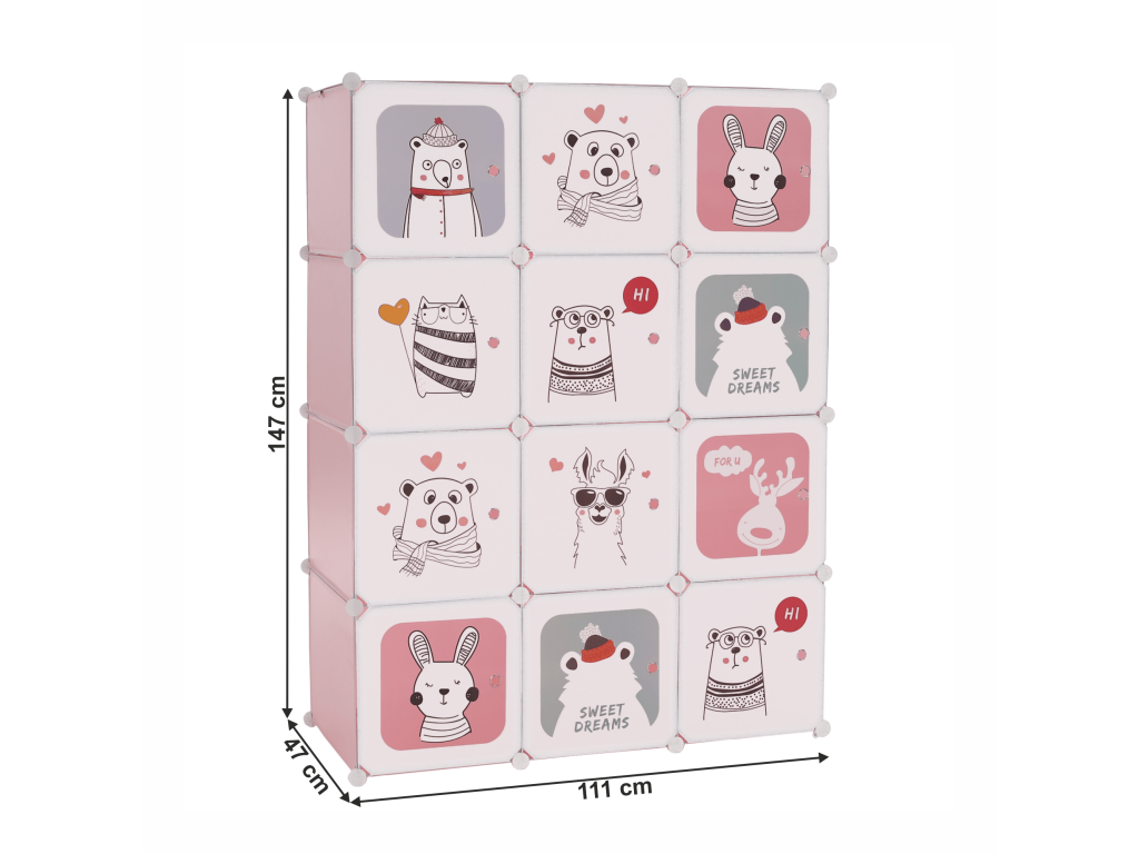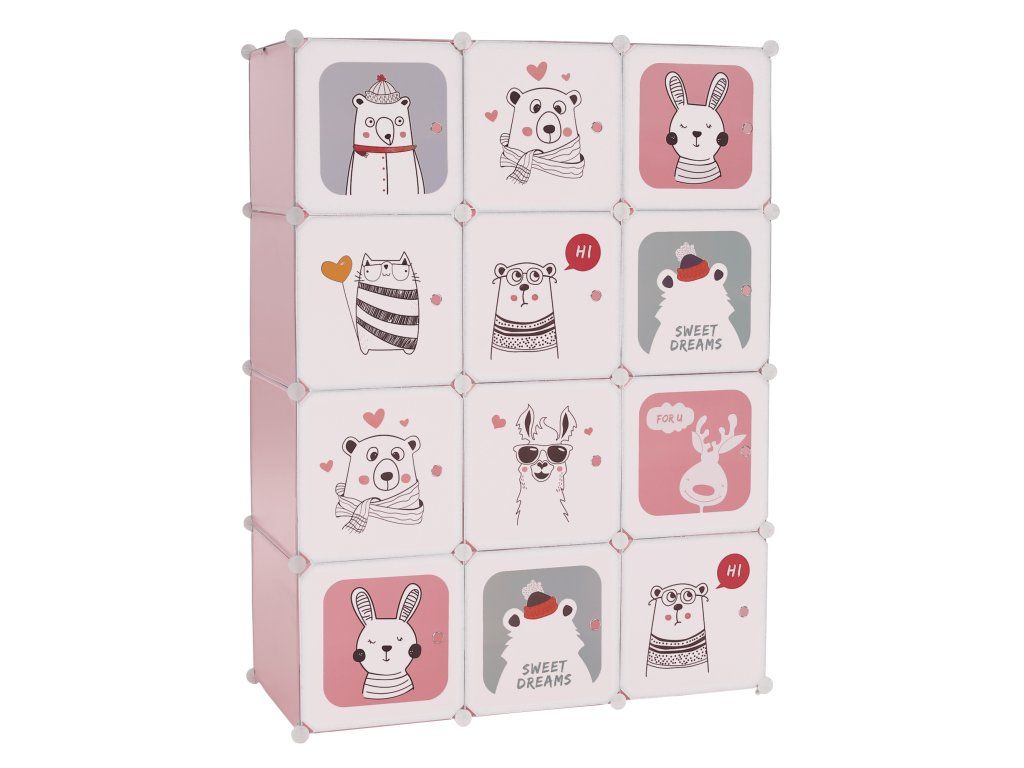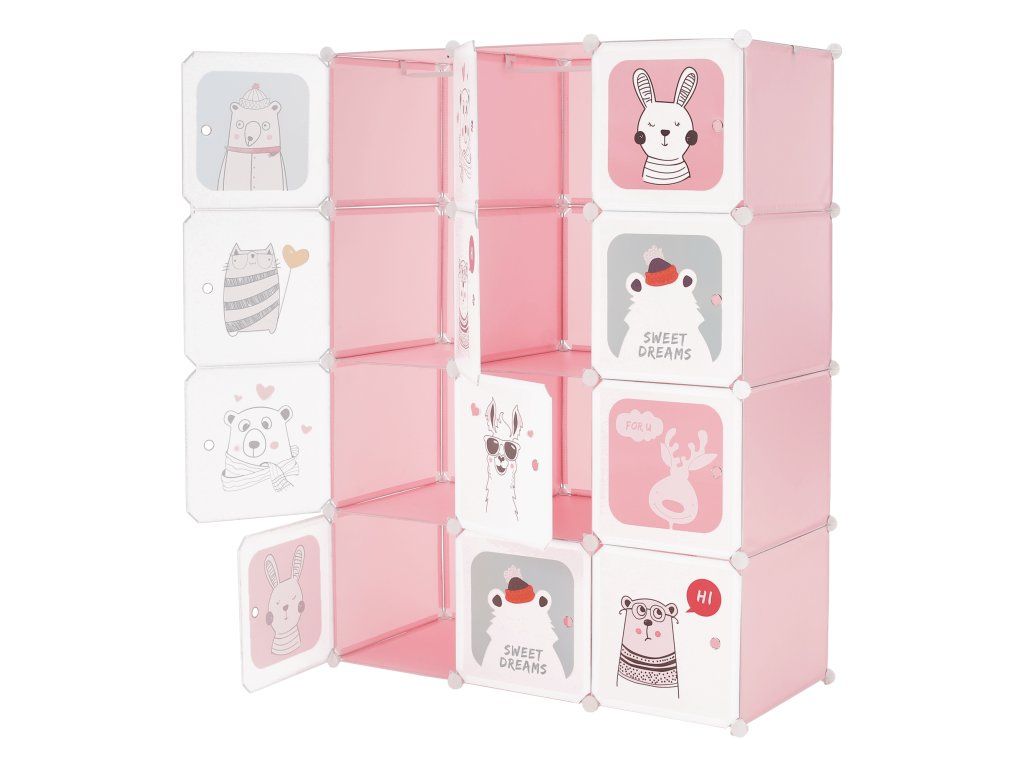 Detská modulárna skriňa, ružová/detský vzor, NURMI