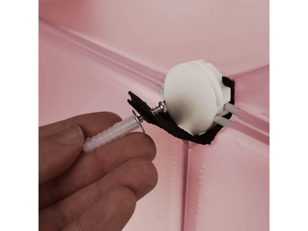 V balení sa nachádza upevnenie k stene, ktoré je potrebné používať spolu s výrobkom, aby nedošlo k prevráteniu.