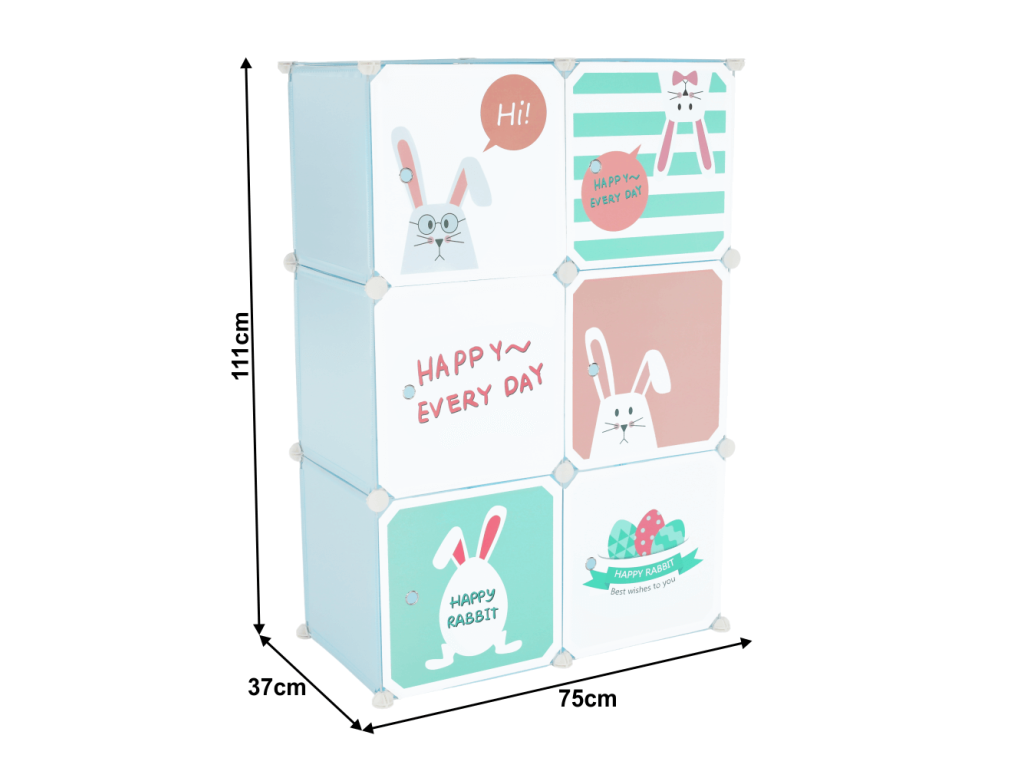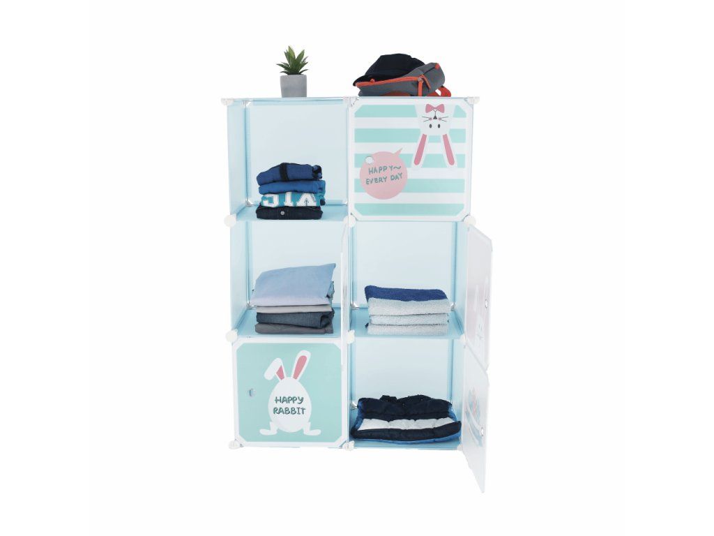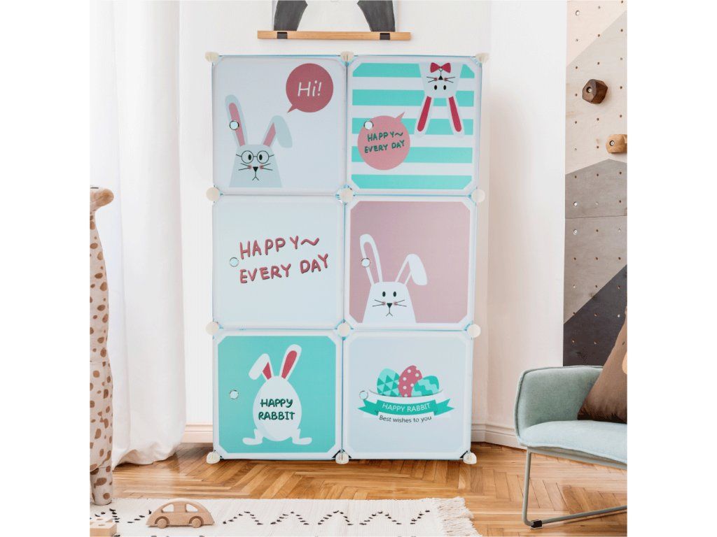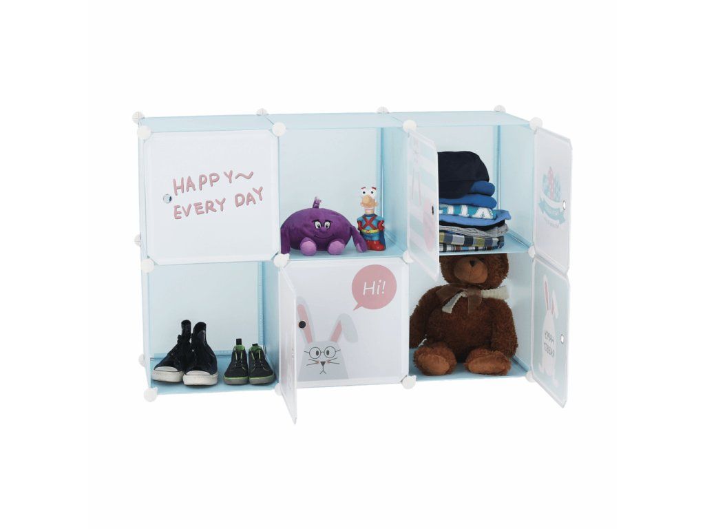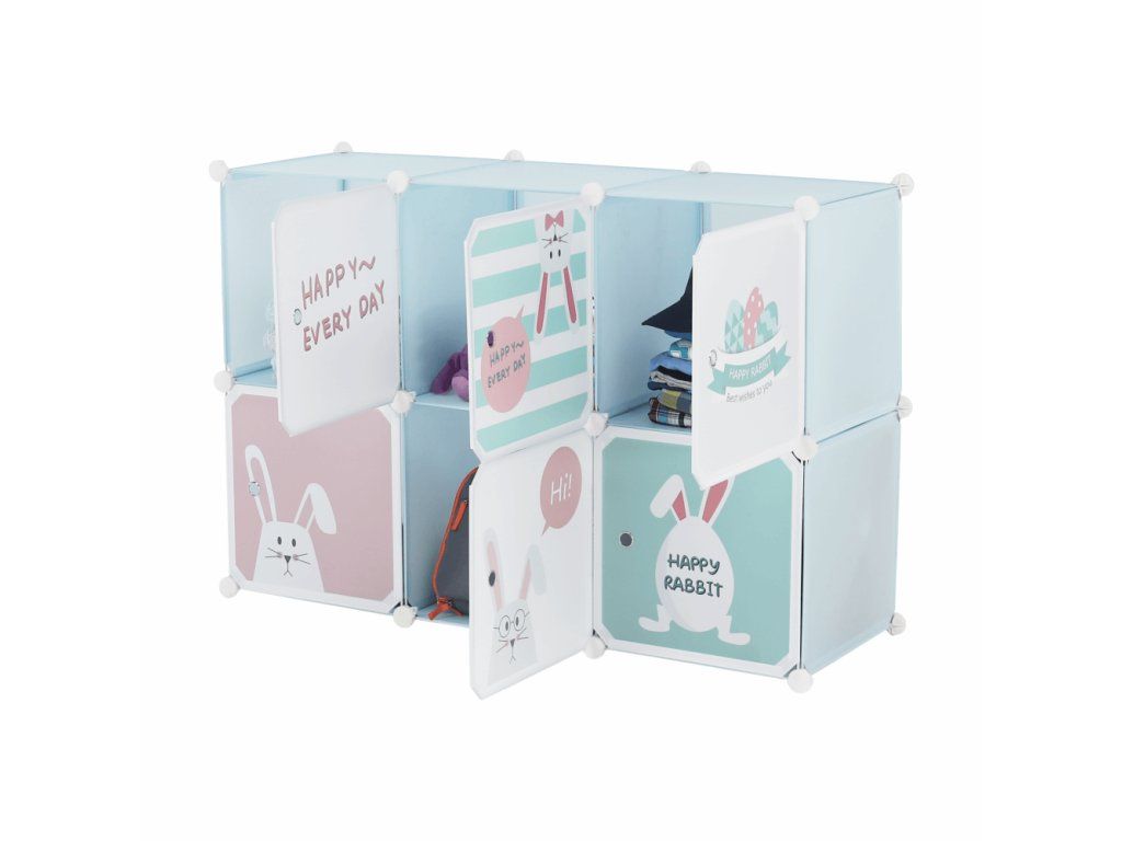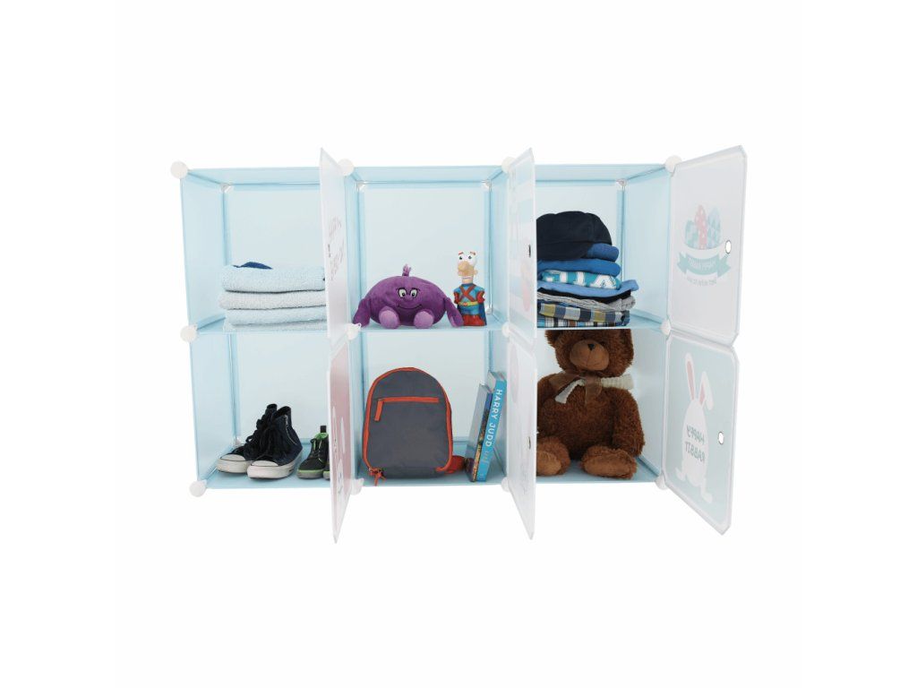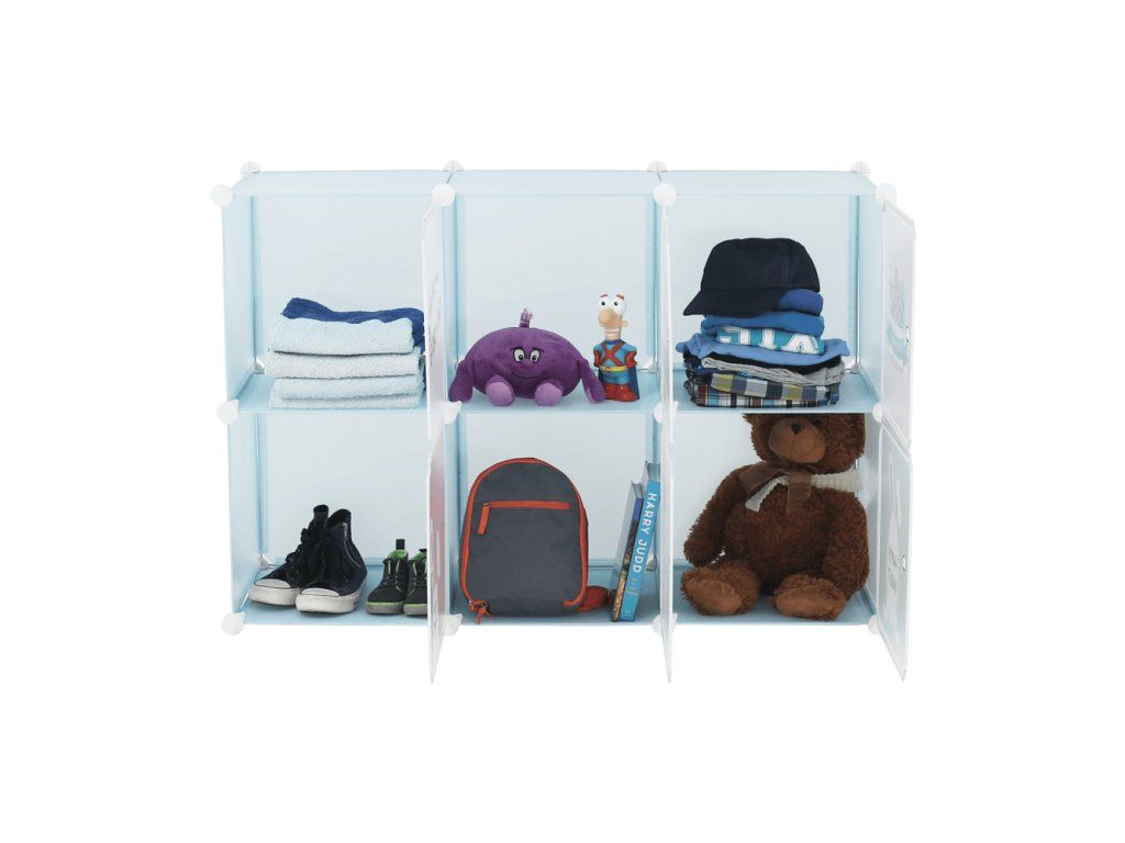 Detská modulárna skrinka, modrá/detský vzor, EDRIN