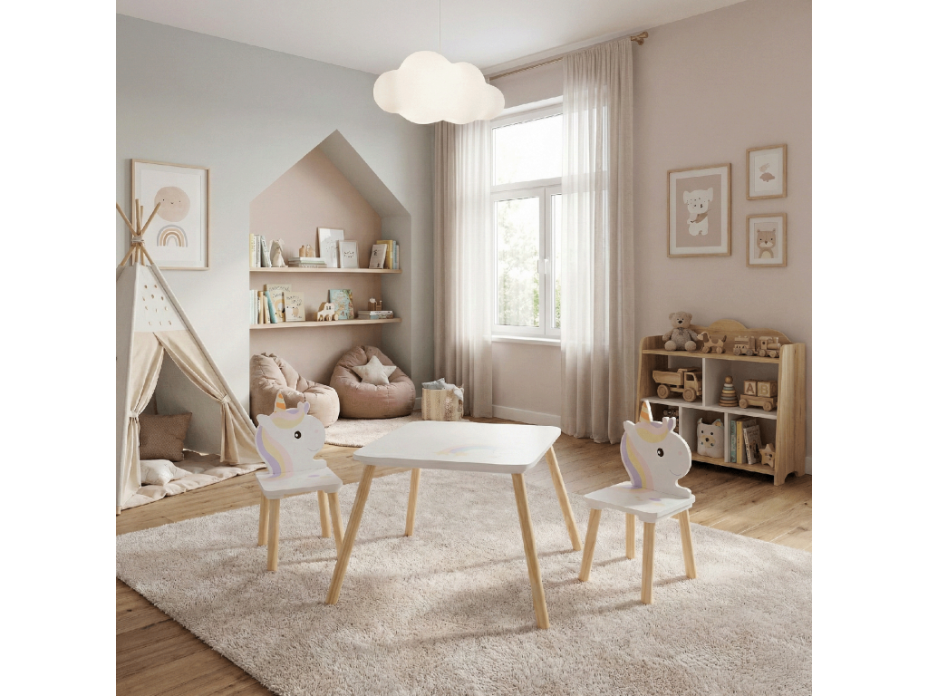 Materiál: MDF/masívne borovicové drevoFarba: biela/prírodná/detský motív jednorožec