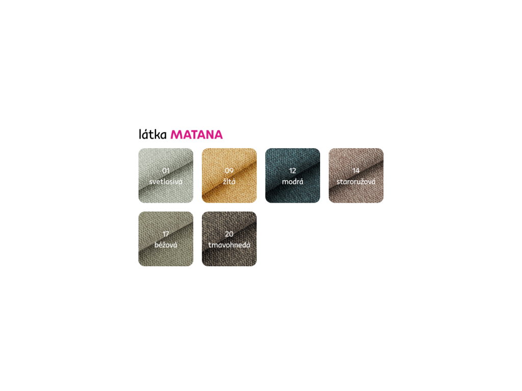 Možnosť objednania v 6 farebných prevedeniach látky Matana v cene 169 Eur. Pri individuálnej objednávke je potrebné zaplatiť 20% zálohu z danej sumy. Po uhradení zálohy bude Vaša požiadavka zadaná do výroby. Doba dodania 6-8 týždňov.