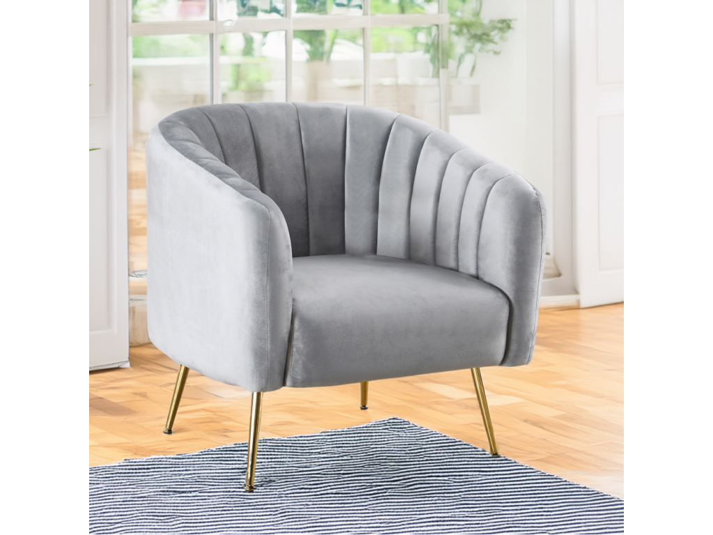 Dizajnové kreslo, sivá Velvet látka/gold chróm-zlatý, BAGY