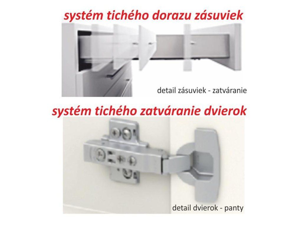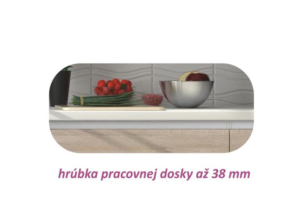 Možnosť dokúpenia univerzálneho Ľ/P drezu LAY ON. Možnosť dokúpenia pracovnej dosky naviac 38 mm za 63 Eur/bm.