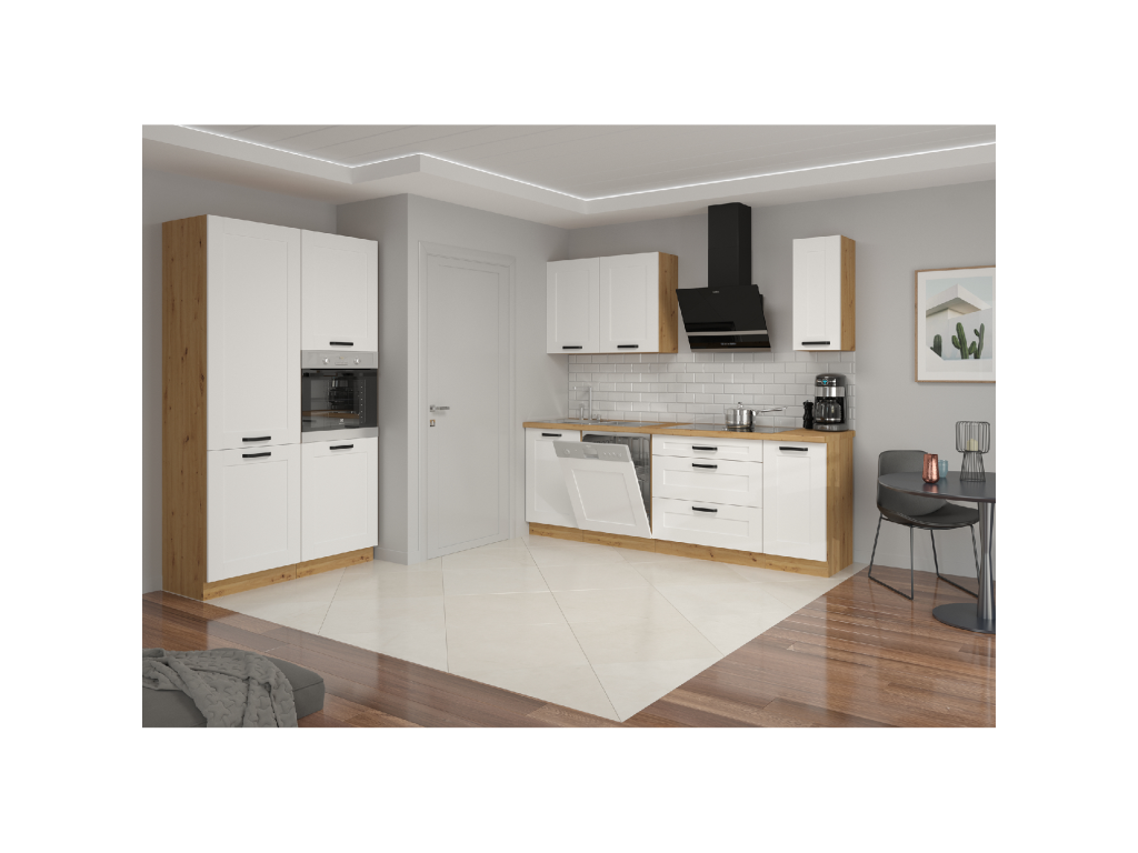 Spodné skrinky sú dodávané vrátane dolnej lišty, bez pracovnej dosky.