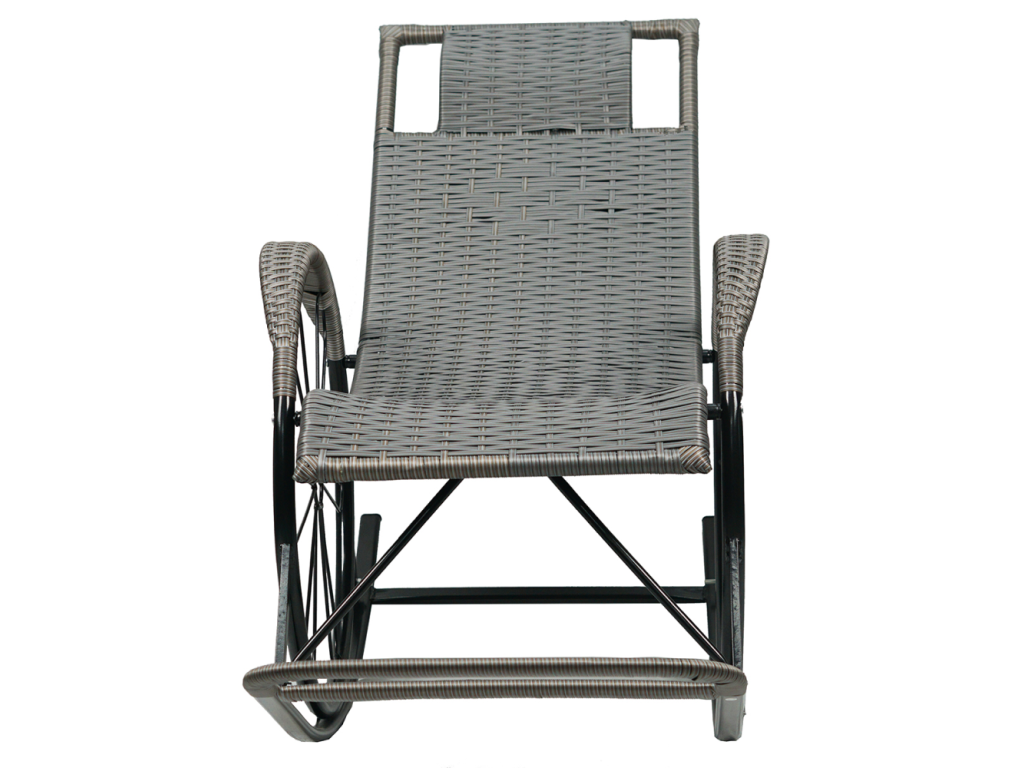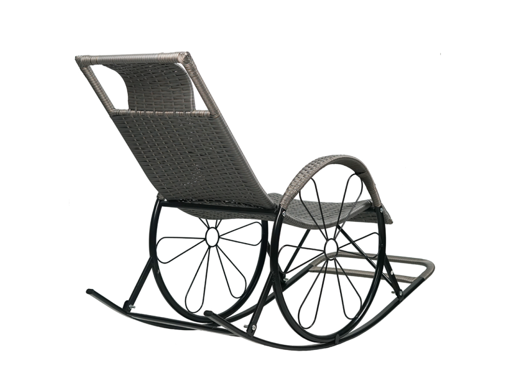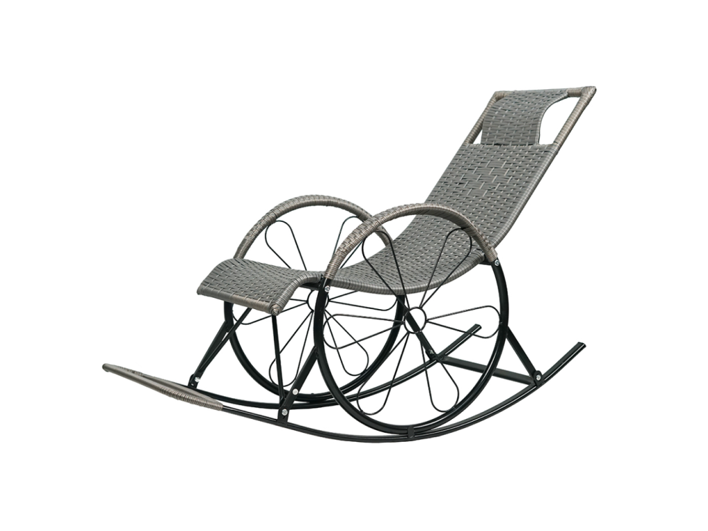 Hojdacie kreslo, ratan/kov, sivá, ROKIN