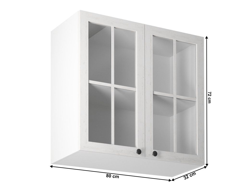 Horná dvojdverová skrinka so sklom G80S, biela/sosna andersen, PROVANCE