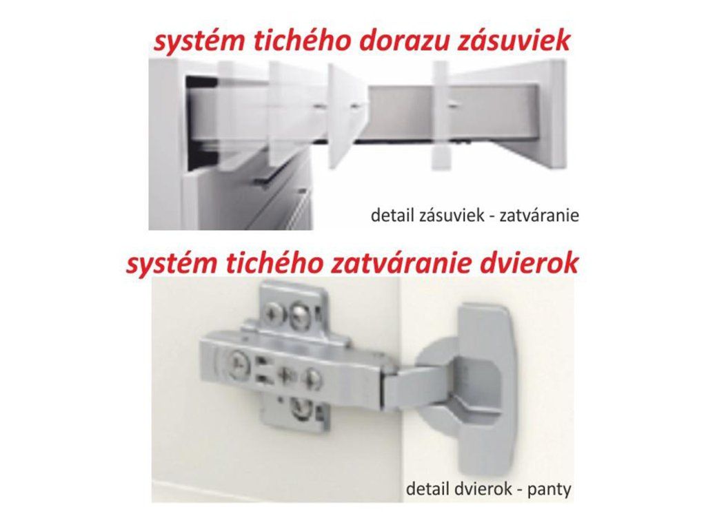 Možnosť dokúpenia univerzálneho Ľ/P drezu LAY ON. Možnosť dokúpenia pracovnej dosky naviac 38 mm za 63 Eur/bm.