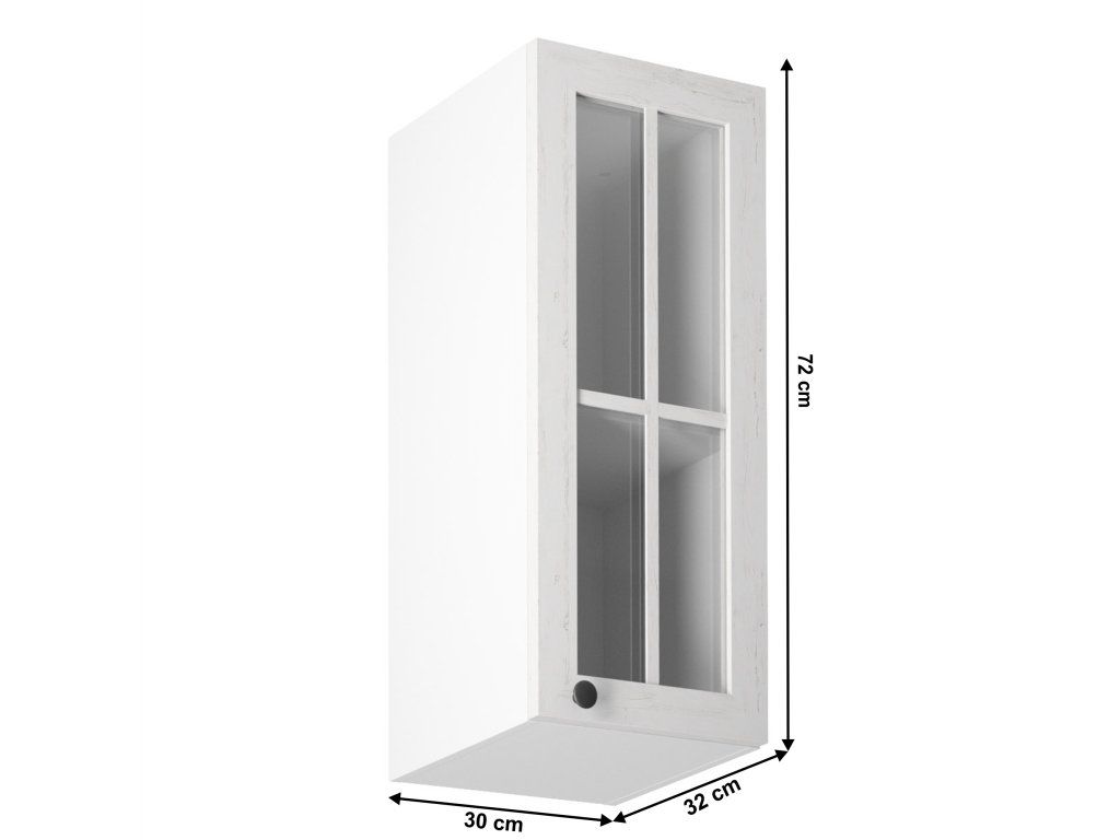 Horná, pravá skrinka s dvierkami so sklom a jednou policou ku kuchyni PROVANCEPrevedenie: DTD laminovaná/MDF