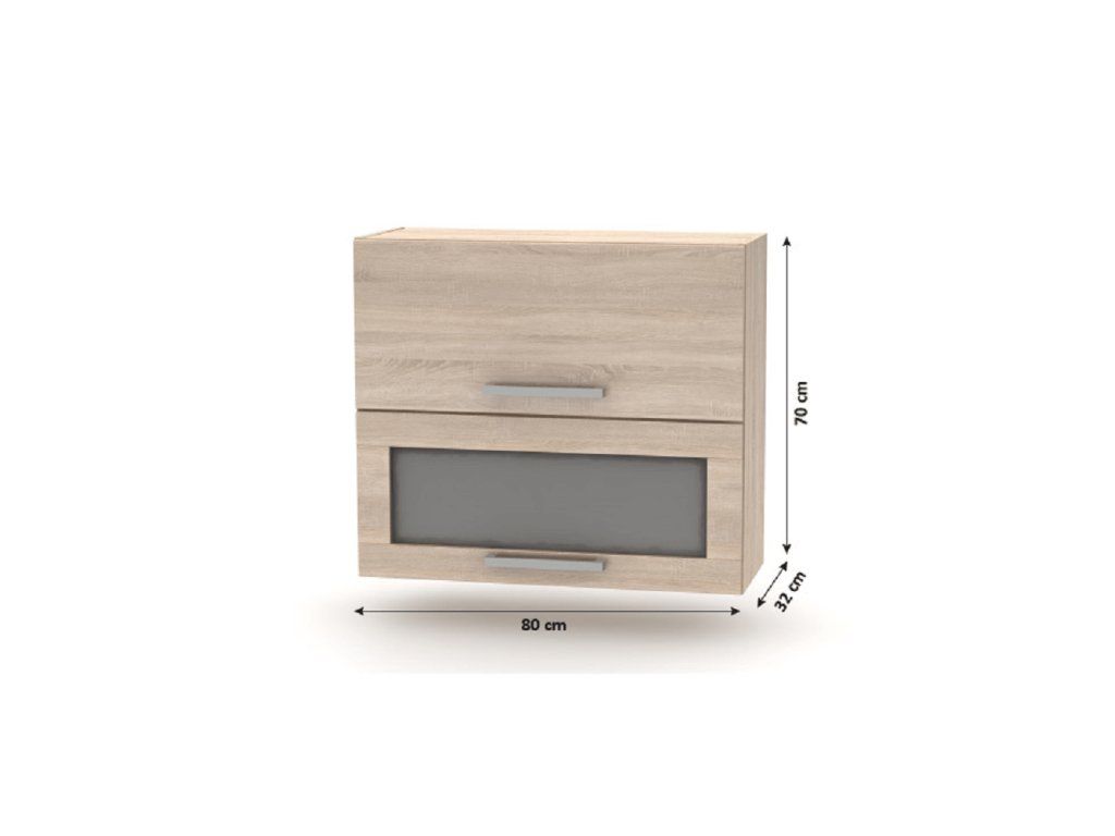 Horná výklopná skrinka so sklom 2DV, dub sonoma, NOVA PLUS NOPL-016-OH