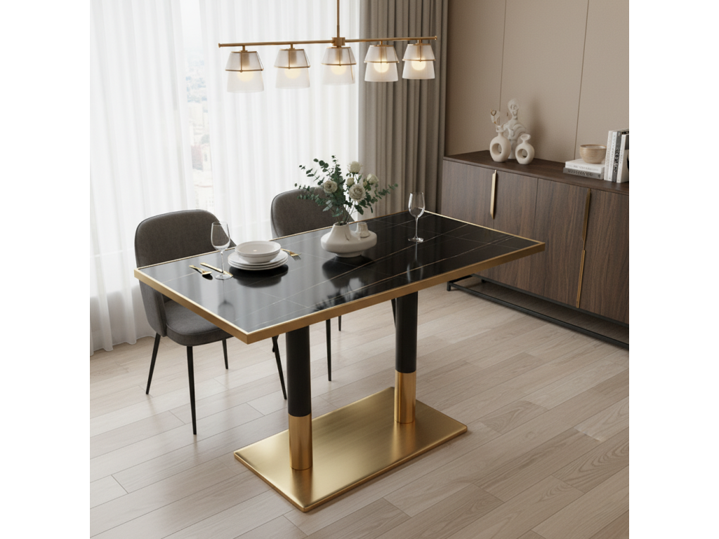 Jedálenský bistro stôl, čierny mramor/čierna/zlatá, 120x70 cm, DARIAN