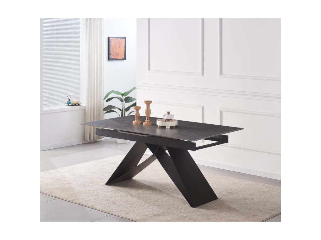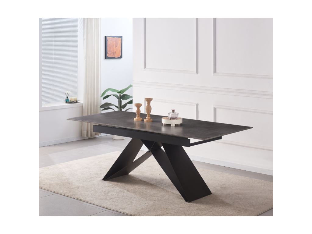 Jedálenský rozkladací stôl, betón/čierna, 160-200x90 cm, MAJED
