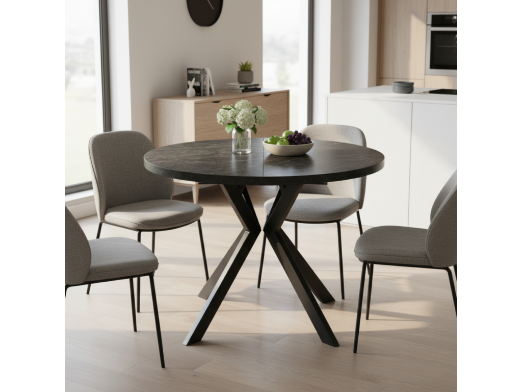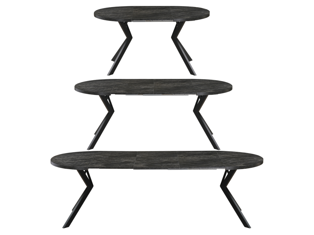 Jedálenský rozkladací stôl, betón tmavý/čierna, 100-250x75,5 cm, LUKOS