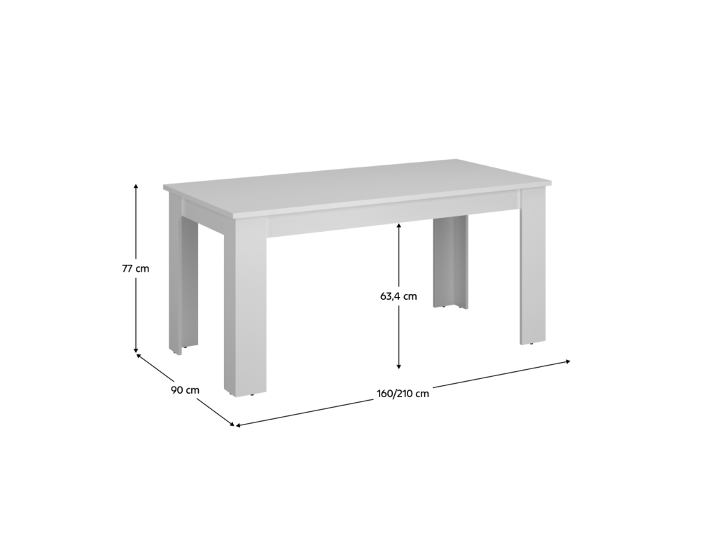 Jedálenský rozkladací stôl, biela, 160-210x90 cm, ERODIN
