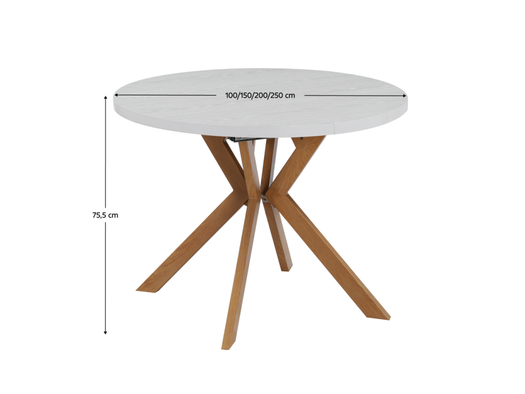 Jedálenský rozkladací stôl, biela/dub, 100-250x75,5 cm, LUKOS