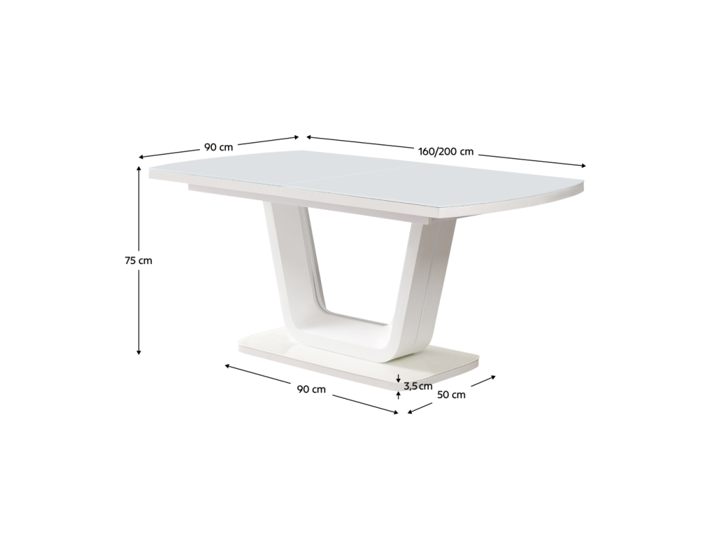 Jedálenský rozkladací stôl, biely lesk, 160-200x90 cm, OLAV