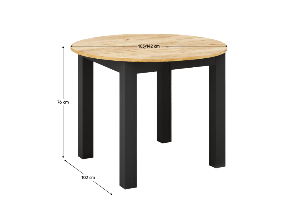 Jedálenský rozkladací stôl, dub craft zlatý/čierna, 103-142x76 cm, HARRY