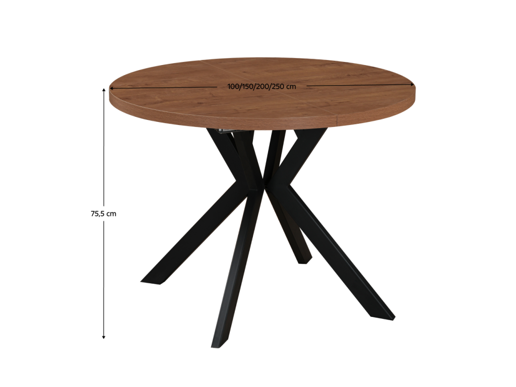 Jedálenský rozkladací stôl, dub tmavý/čierna, 100-250x75,5 cm, LUKOS