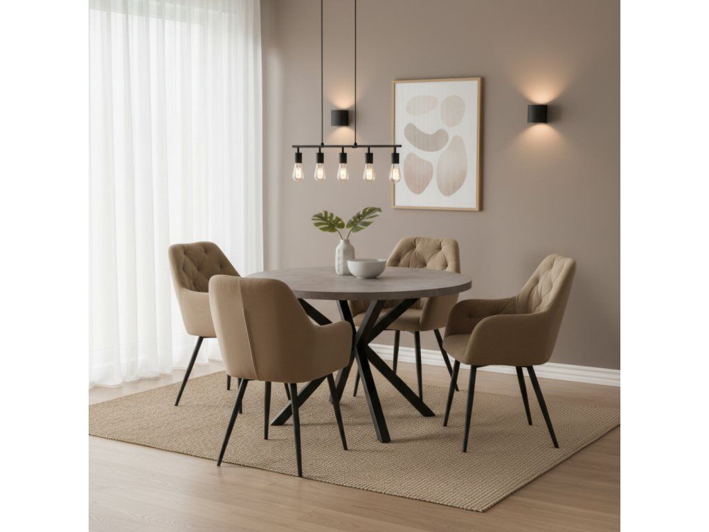 Jedálenský stôl, betón/čierna, priemer 120 cm, MEDOR
