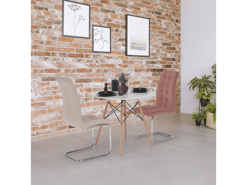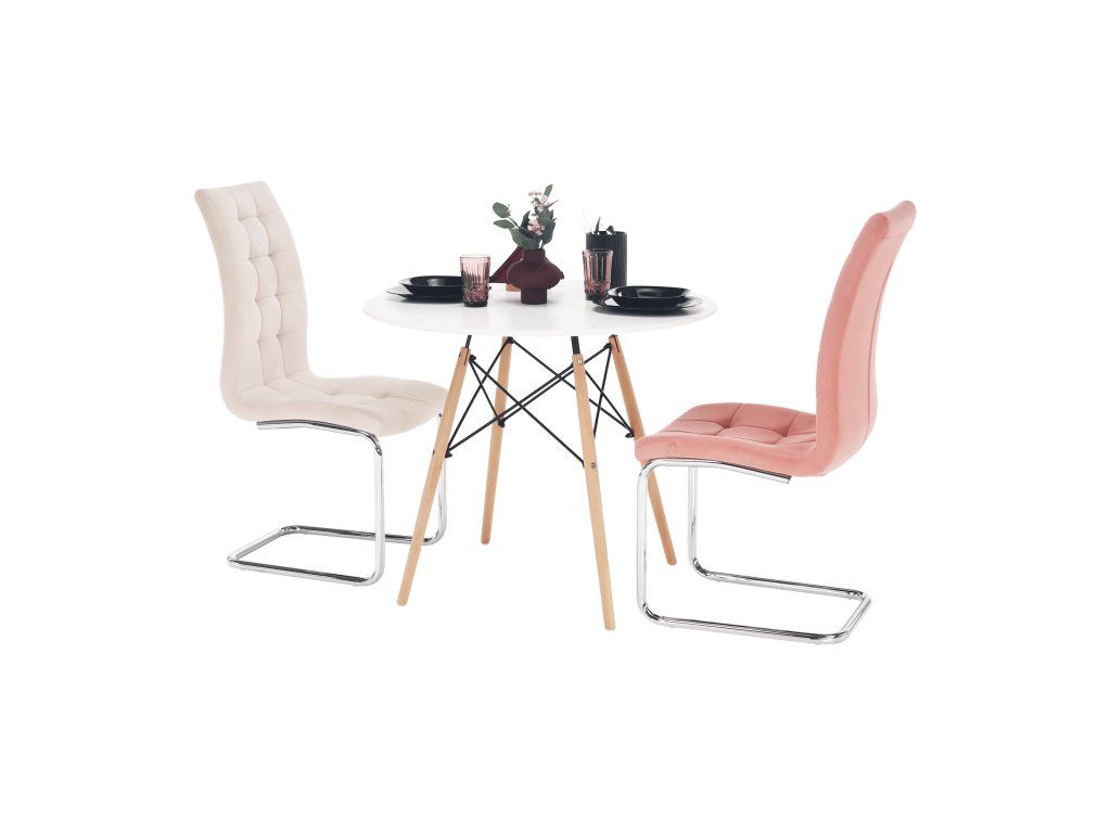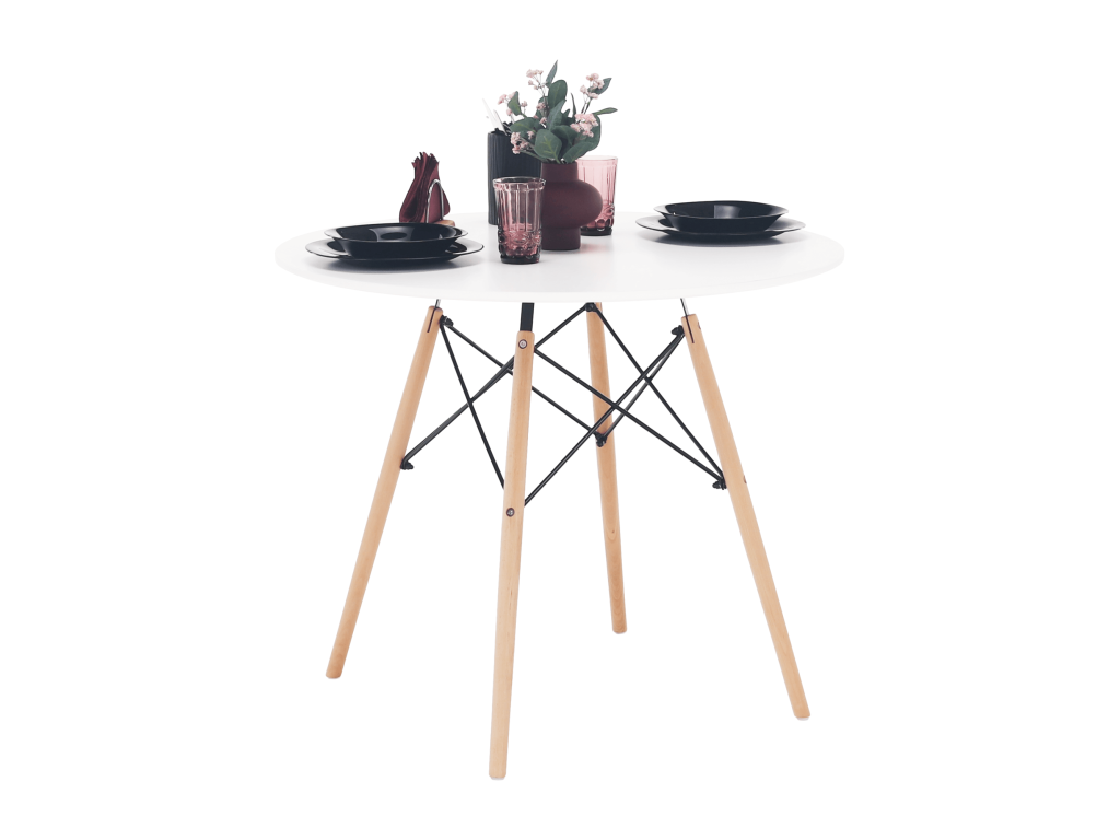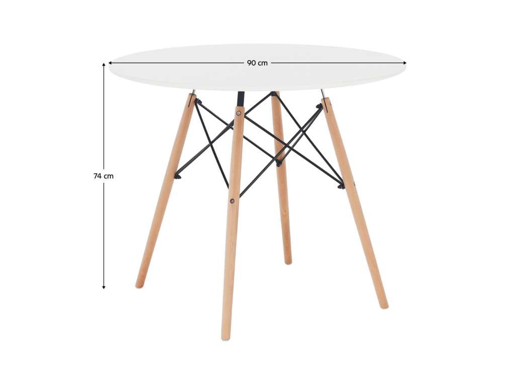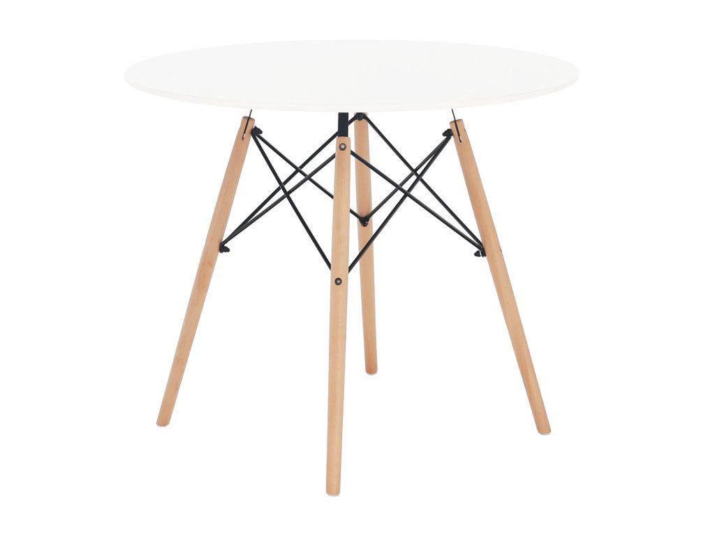 Jedálenský stôl, biela/buk, priemer 90 cm, GAMIN 2 NEW 90