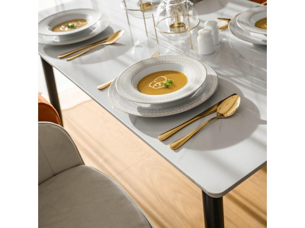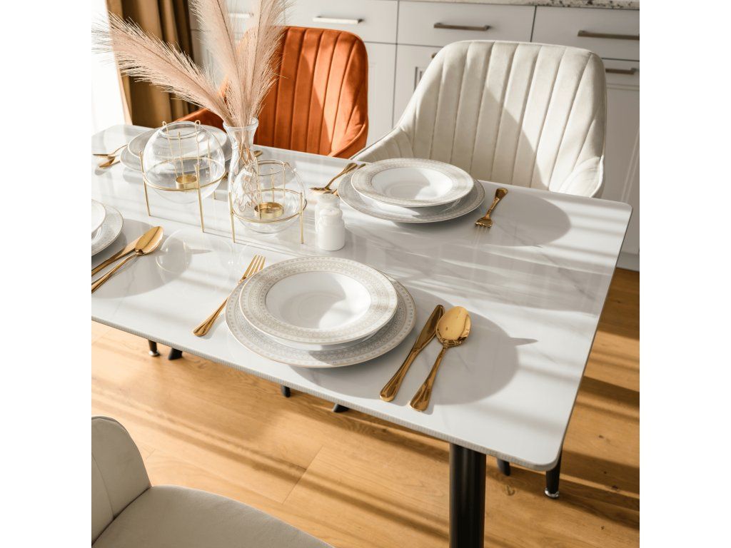 Jedálenský stôl, biely mramor/čierna, 121x71 cm, FLORENC TYP 1