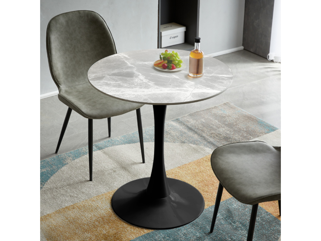 Jedálenský stôl, sivý mramor/čierna, priemer 90 cm, LORIAN TYP 1