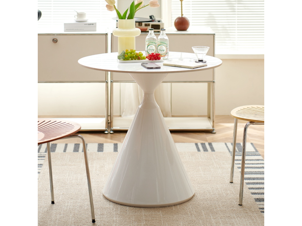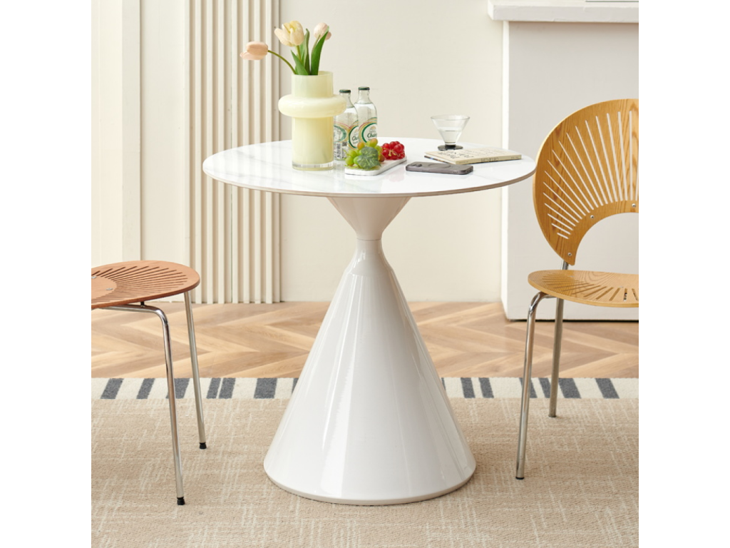 Jedálenský stôl, svetlý mramor/biela, priemer 80 cm, VALER