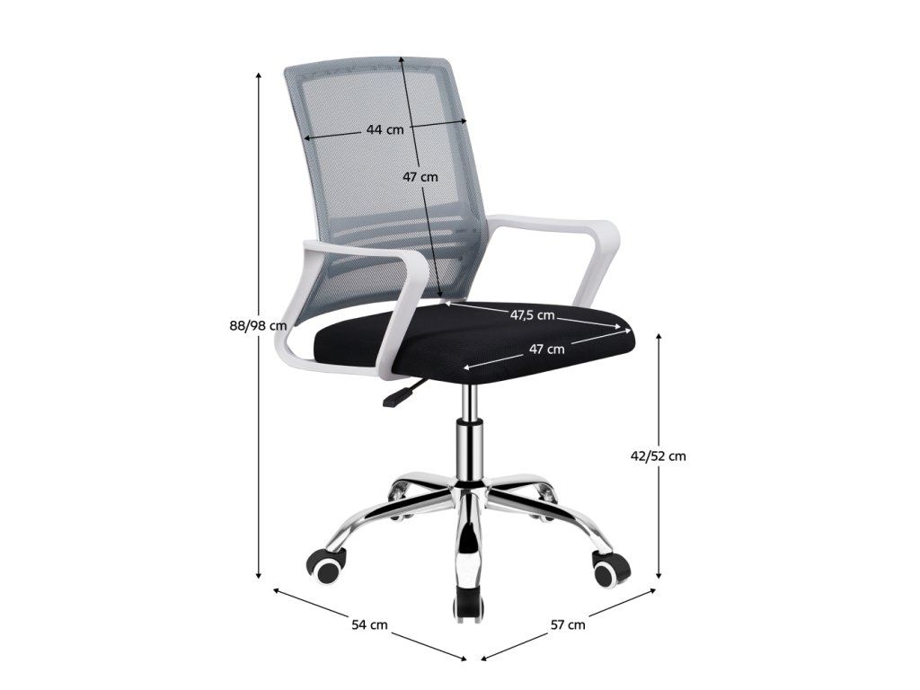 Kancelárska stolička, sieťovina sivá/látka čierna/plast biely, APOLO 2 NEW