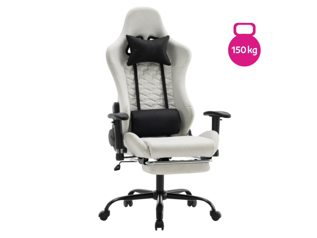Kancelárske/herné kreslo, biela/čierna, nosnosť 150 kg, PAPIBAS