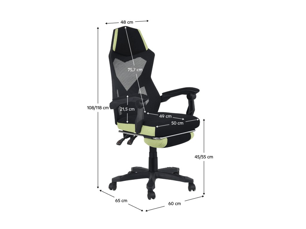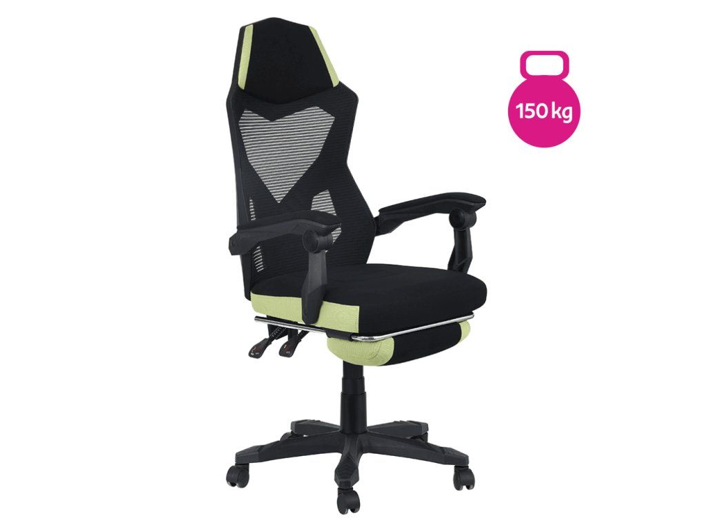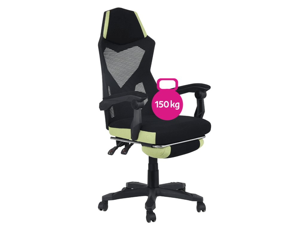 Kancelárske/herné kreslo, čierna/zelená, nosnosť 150 kg, JORIK