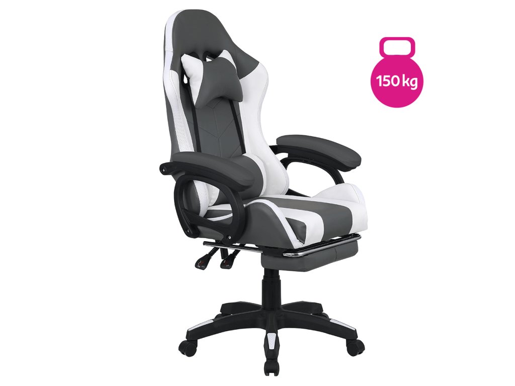Kancelárske/herné kreslo s RGB LED podsvietením, čierna/biela, JOVELA