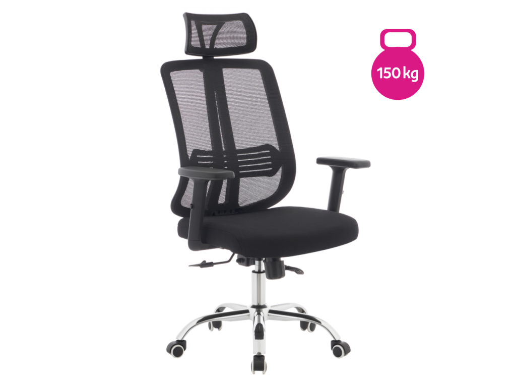 Kancelárske kreslo, čierna/chróm, nosnosť 150 kg, DUVAL
