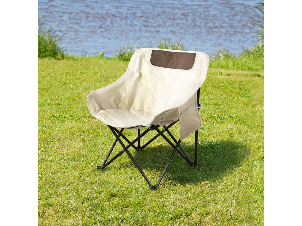 Kempingové kreslo, béžová/čierna, URAO