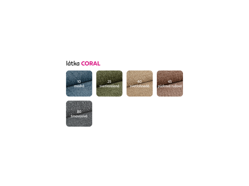 Materiál: látka Coral Boucle 50Oderuodolnosť textílie podľa testu Martindale: 45 000 oderov