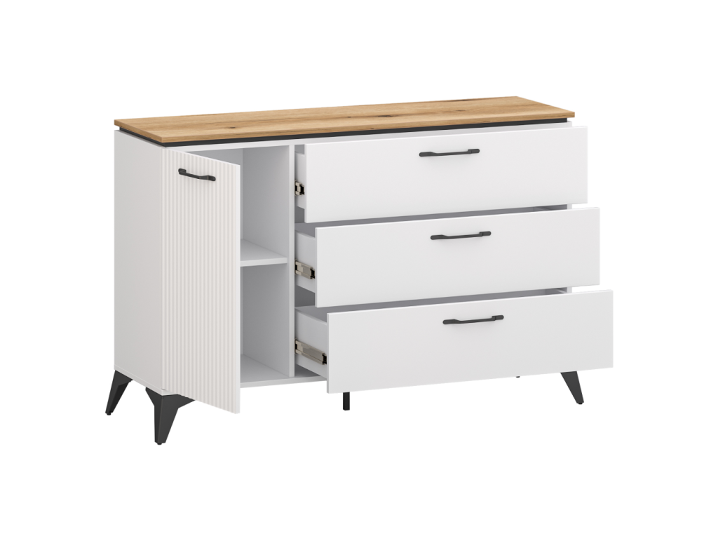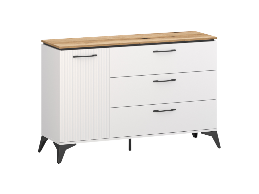 Komoda, biela/dub evoke, VELIS 1D3S