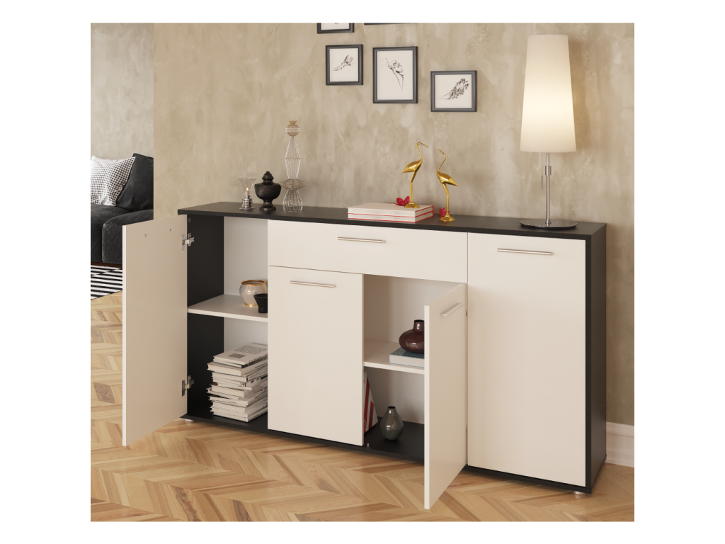 Komoda, čierna/biela, LUNIA