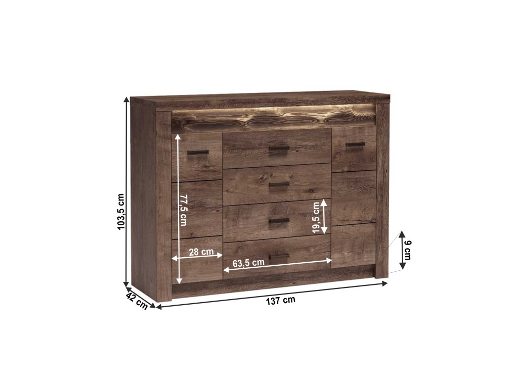 Komoda 07 z luxusného sektorového nábytku.Korpus hrubý až 48 mm, hrúbka materiálu zvyšné časti: 16 mm, úchytky kovové