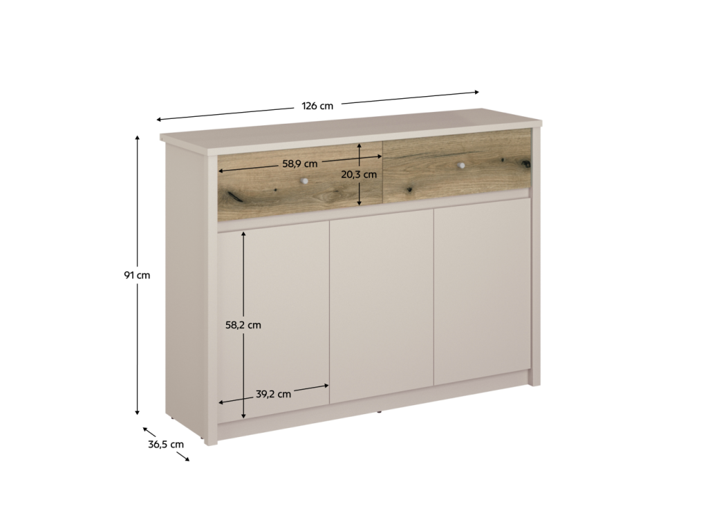 Komoda, kašmír/dub evoke, KAROS 3D2S
