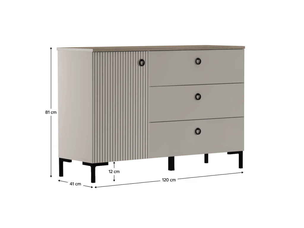 Komoda, sivohnedá Taupe/dub silverjack, DOMCA 1D3S