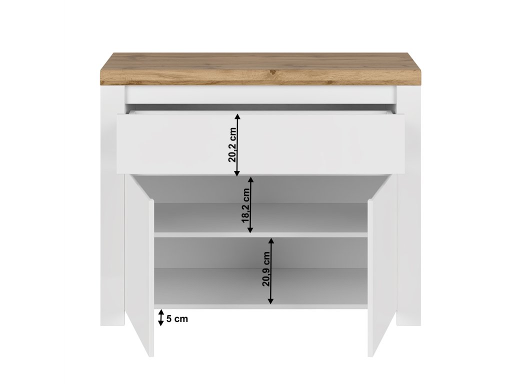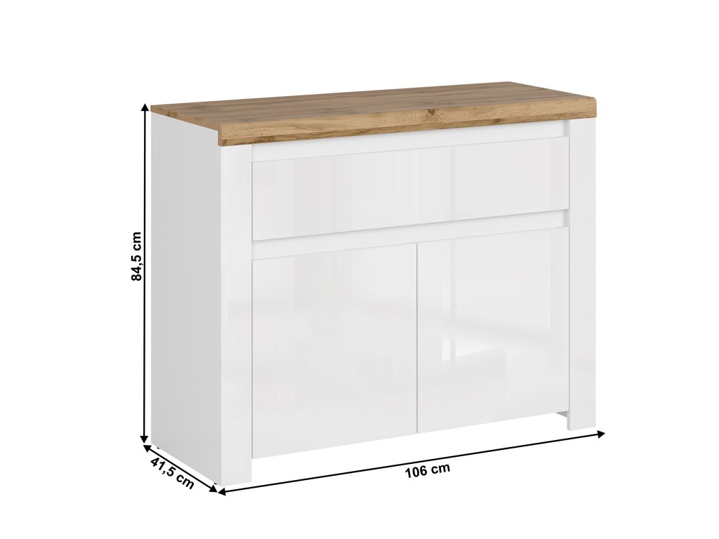 Komoda 2D1S, biely lesk/dub wotan, VILGO
