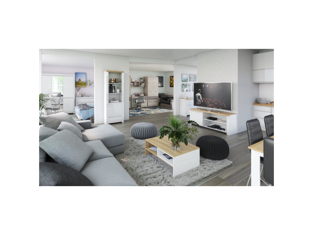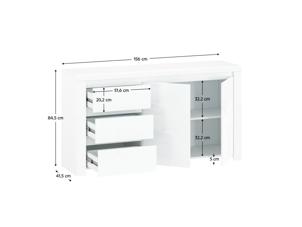 Komoda 2D3S, biely lesk, LINDY