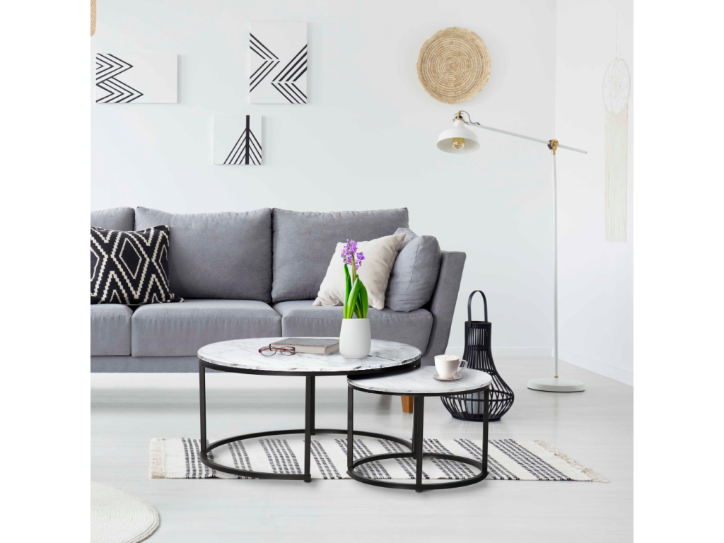 Konferenčné stolíky, set 2 ks, biela/čierna, CIRKO