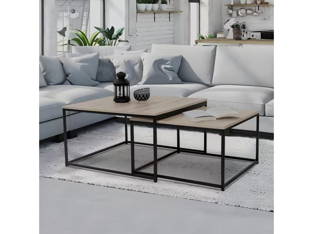 Konferenčné stolíky, set 2 ks, dub sonoma/čierna, KASTLER 2 NEW TYP 1