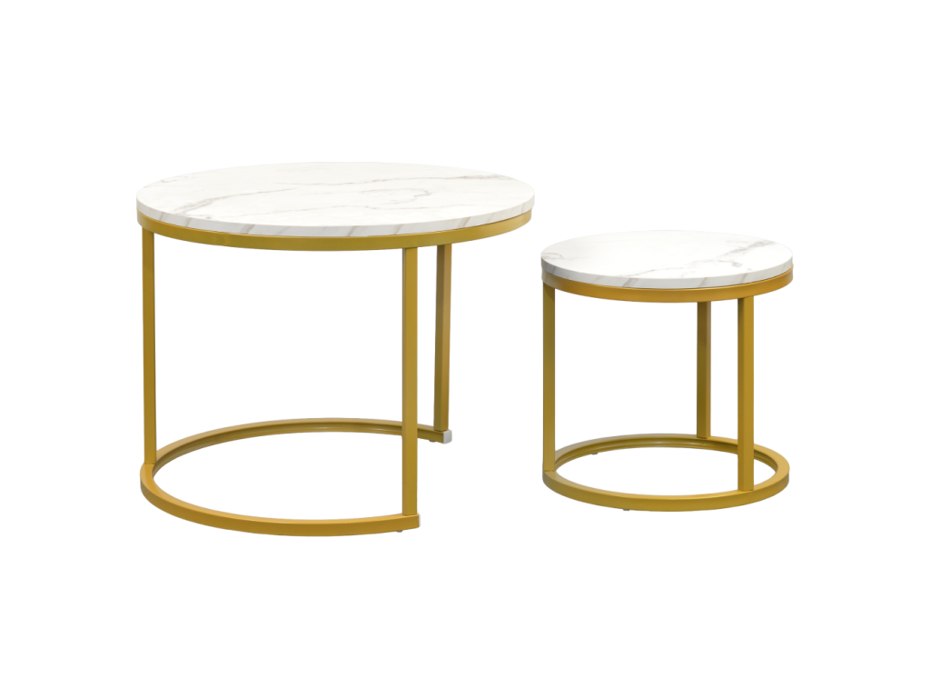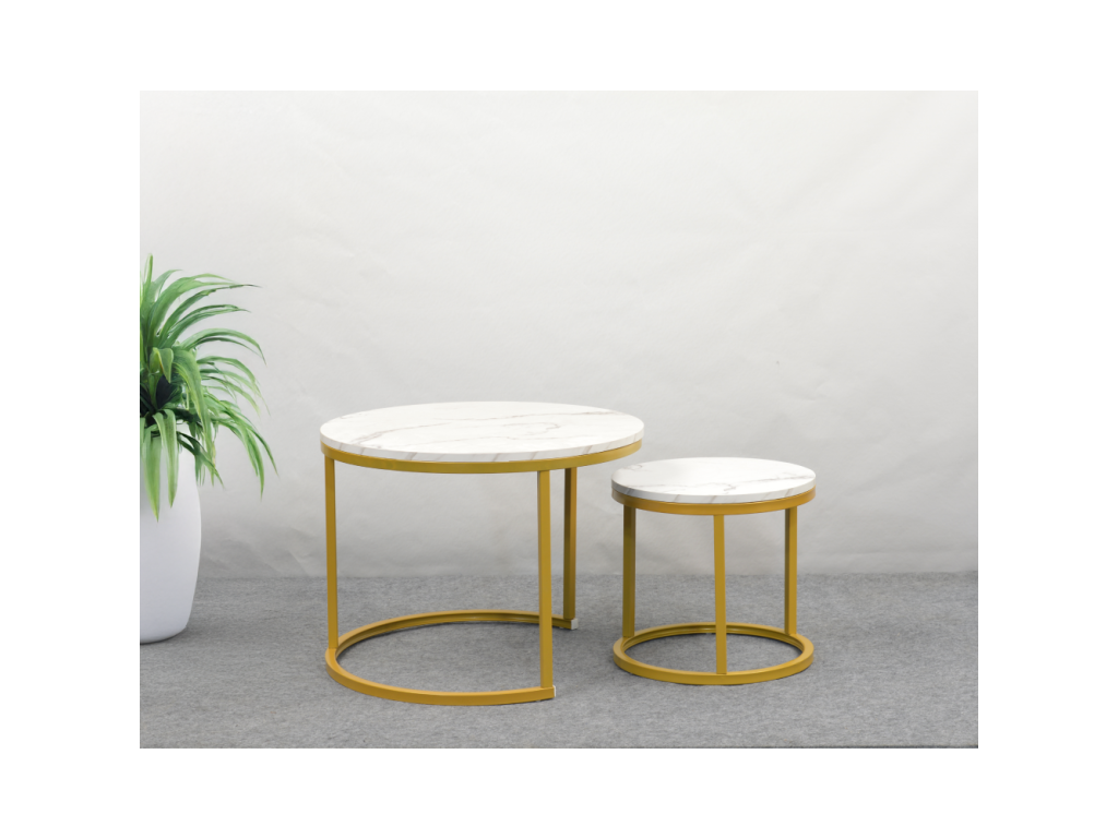 Konferenčné stolíky, set 2 ks, zlatá/imitácia mramoru, DAMON